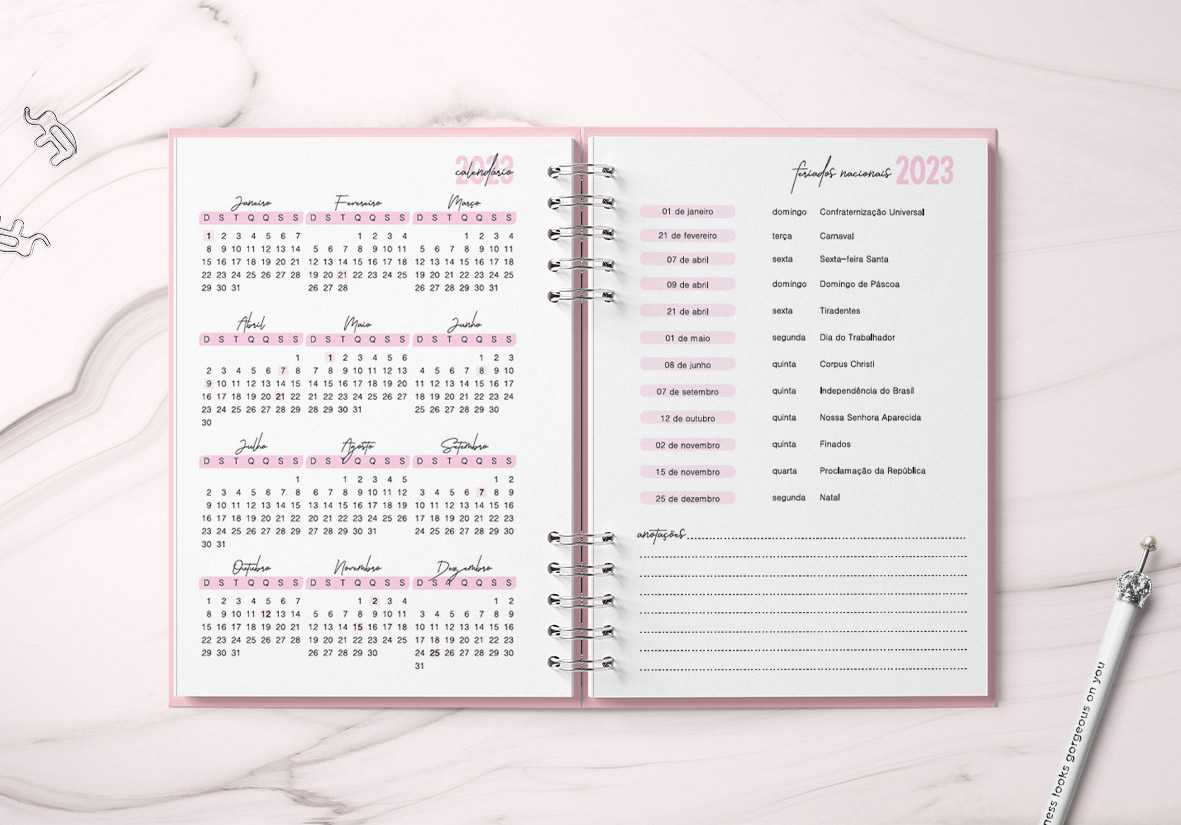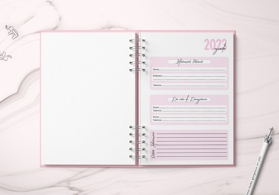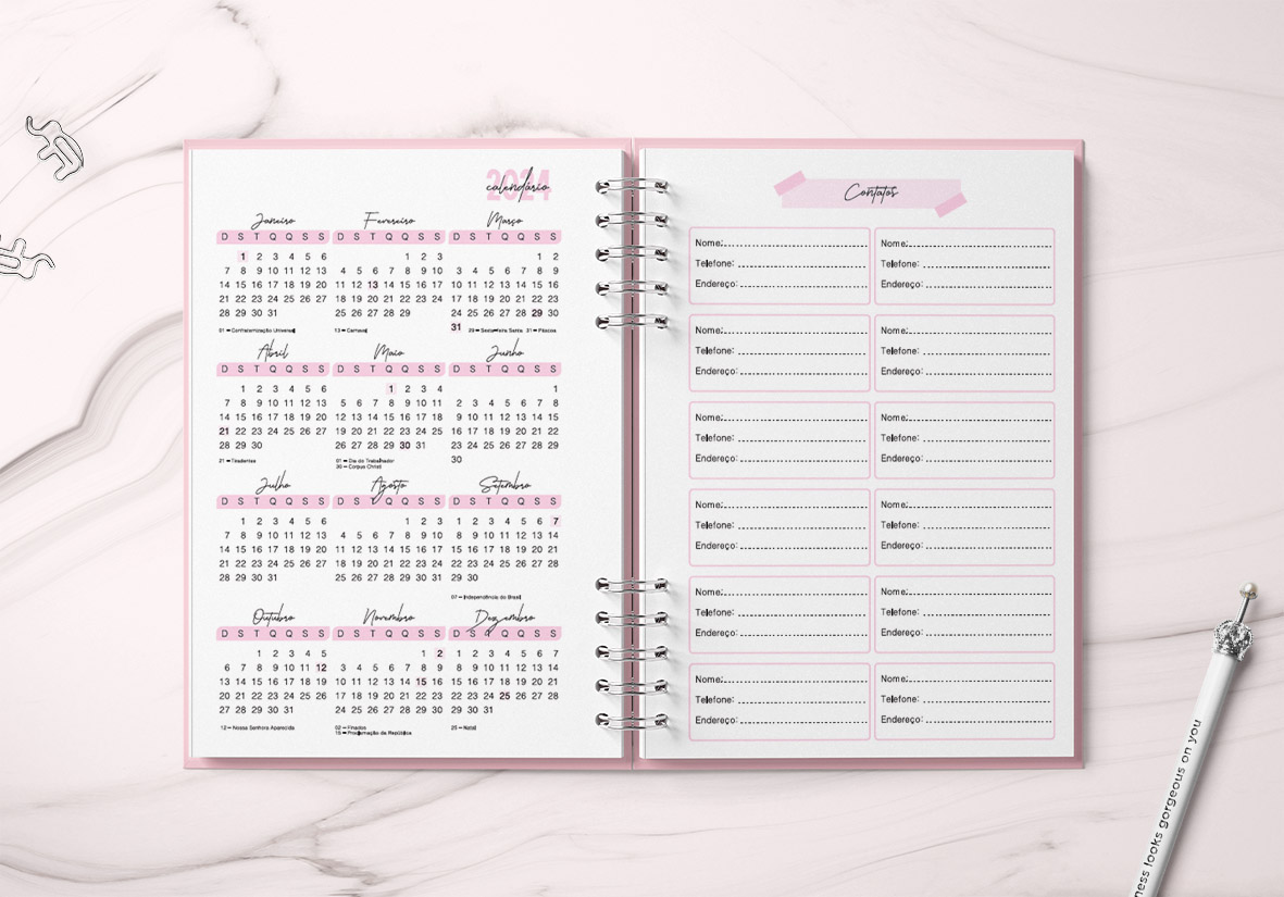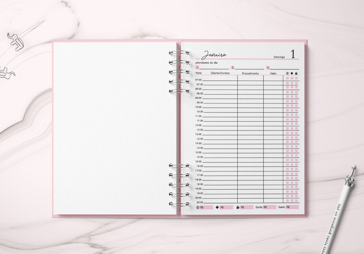 Agenda profissional 1 dia por página;