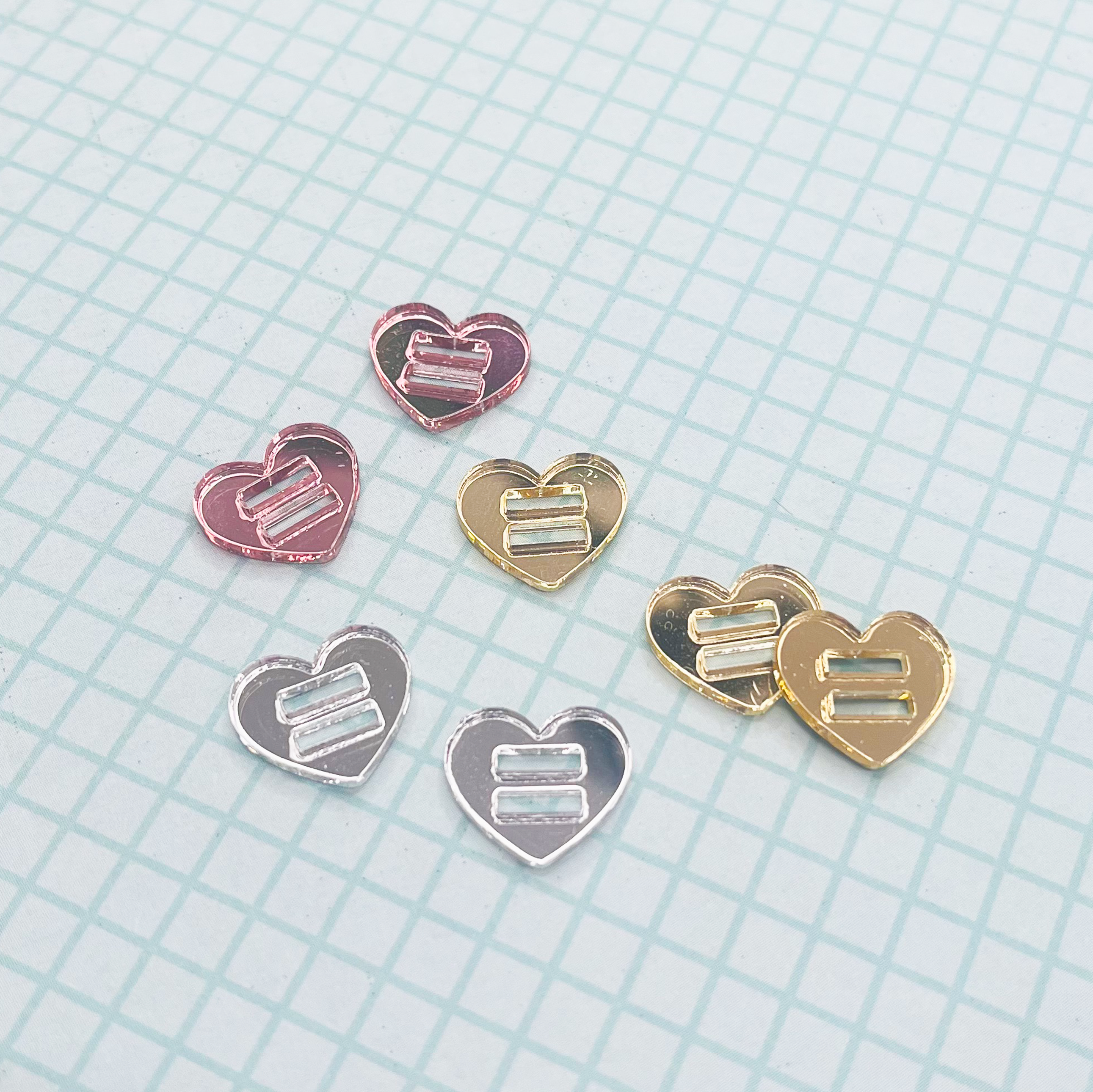 Passantes para elástico | Kit 15 un. Coração Glitter